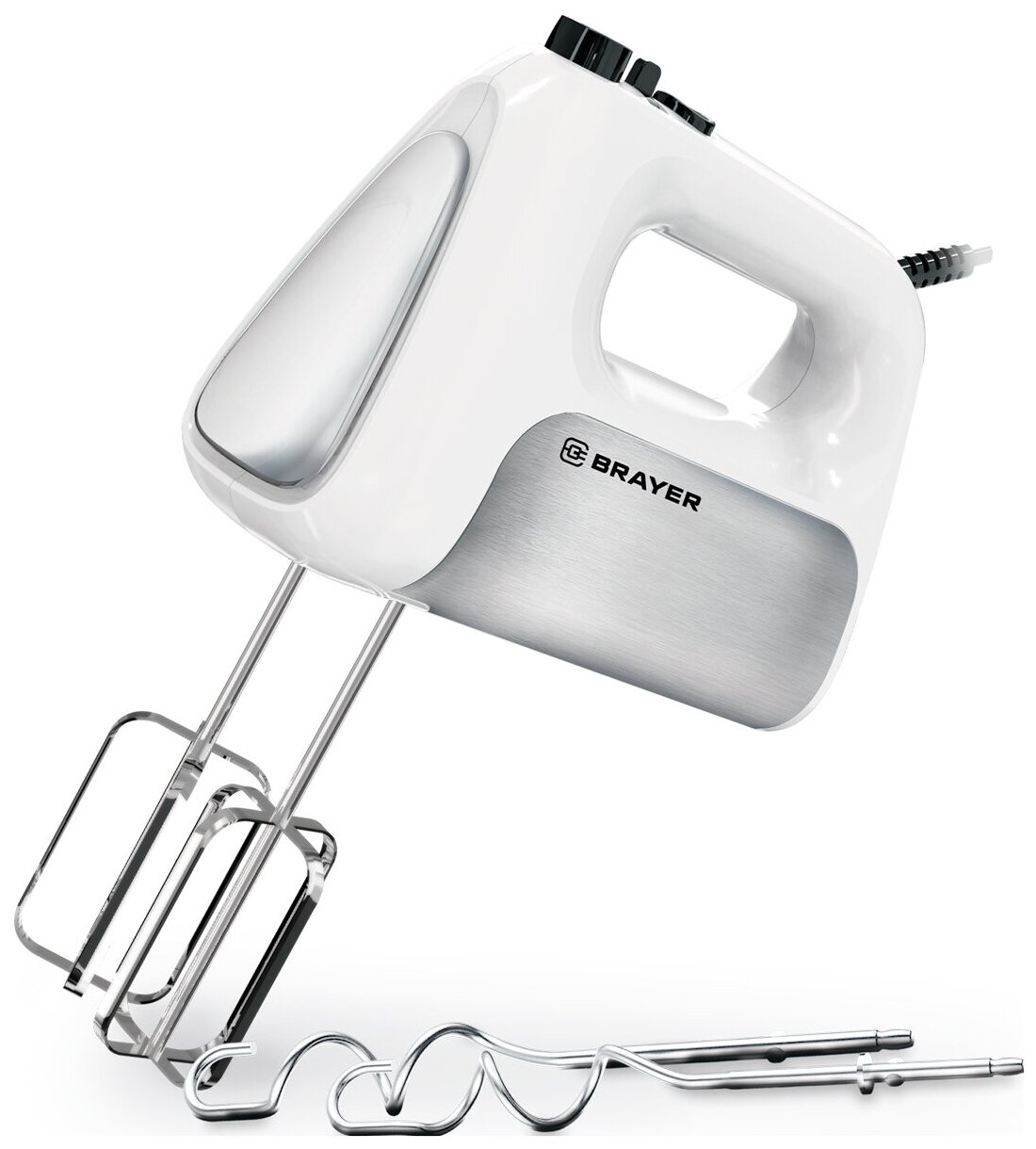 Миксер Brayer BR1303, 500 Вт, корпус из нержавеющей стали, 5 режимов, 2 крюка, 2 венчика