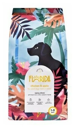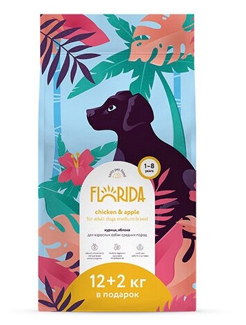 FLORIDA сухой корм для взрослых собак средних пород с курицей и яблоком, 12кг +2кг