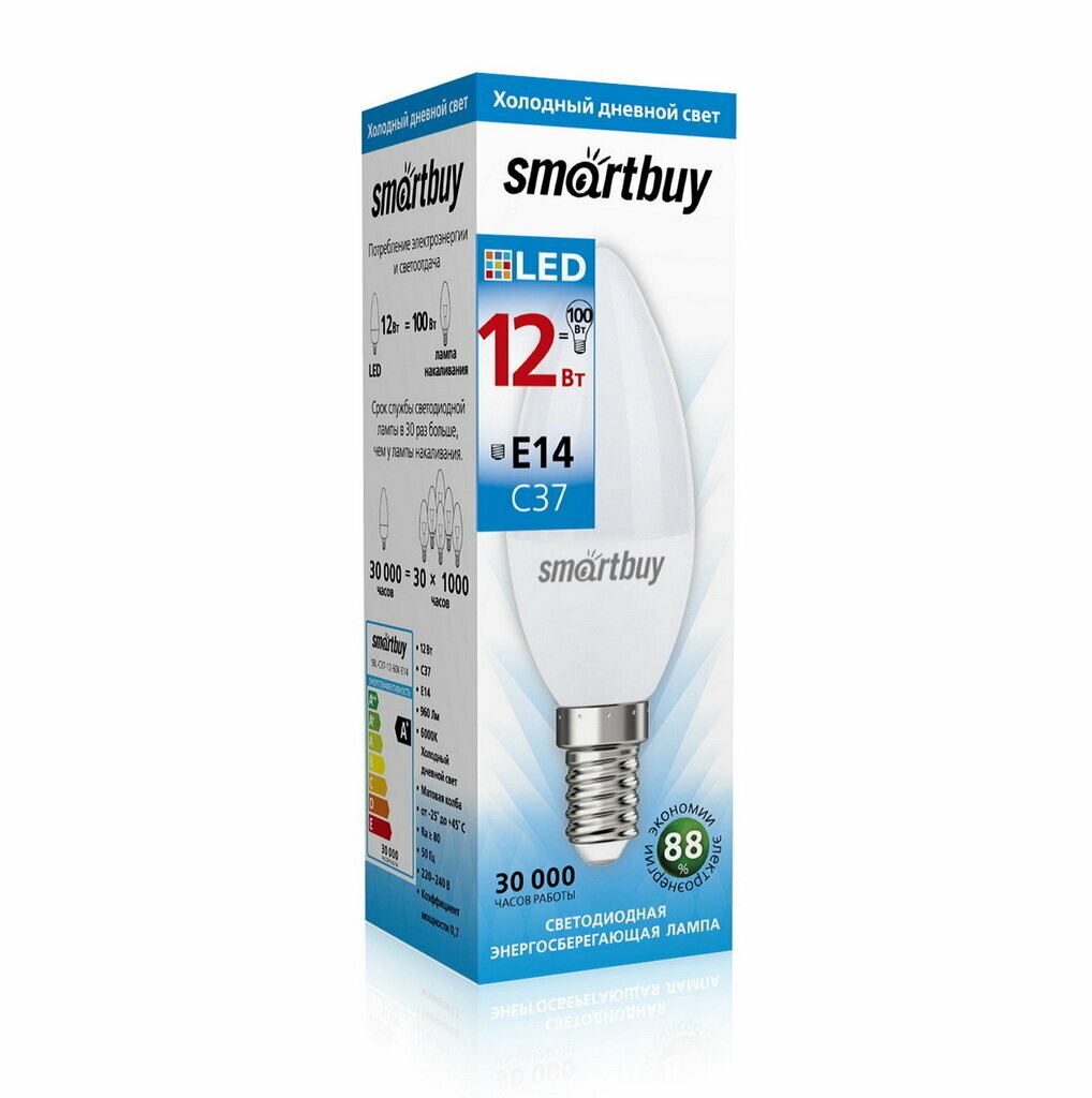 Светодиодная Лампа Smartbuy C37, 12Вт, 6000K, E14 интересное: