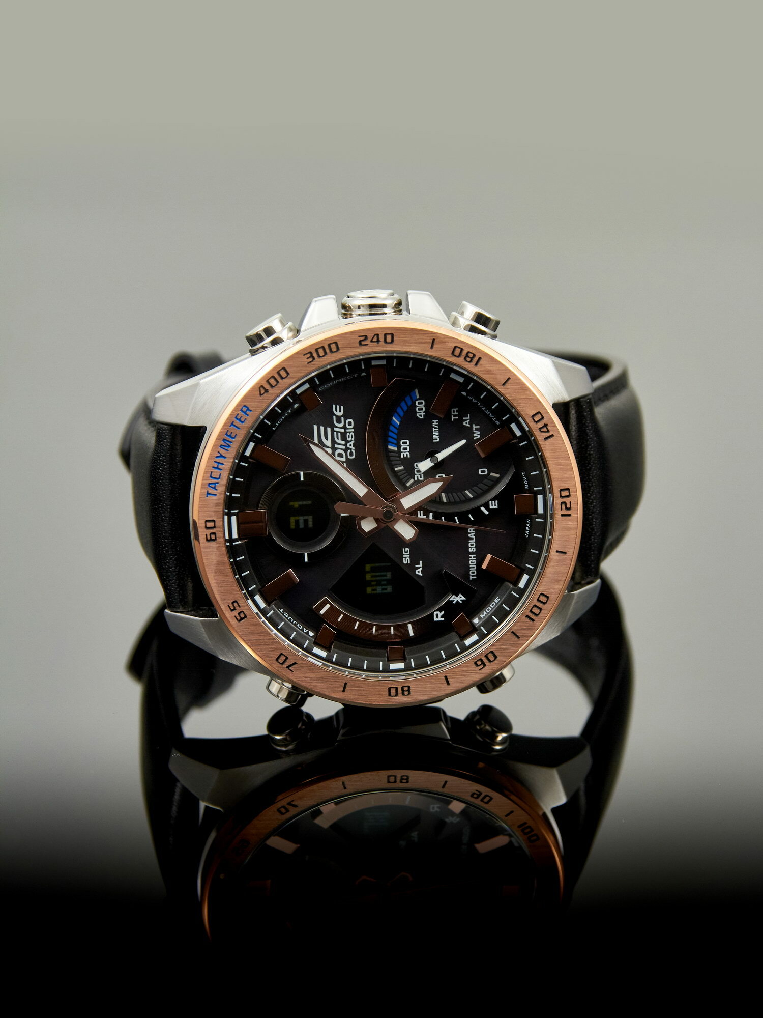Японские кварцевые часы с солнечной подзарядкой Casio Edifice ECB-900GL-1B на кожанном браслете, с водозащитой 10 бар и международной гарантией от производителя