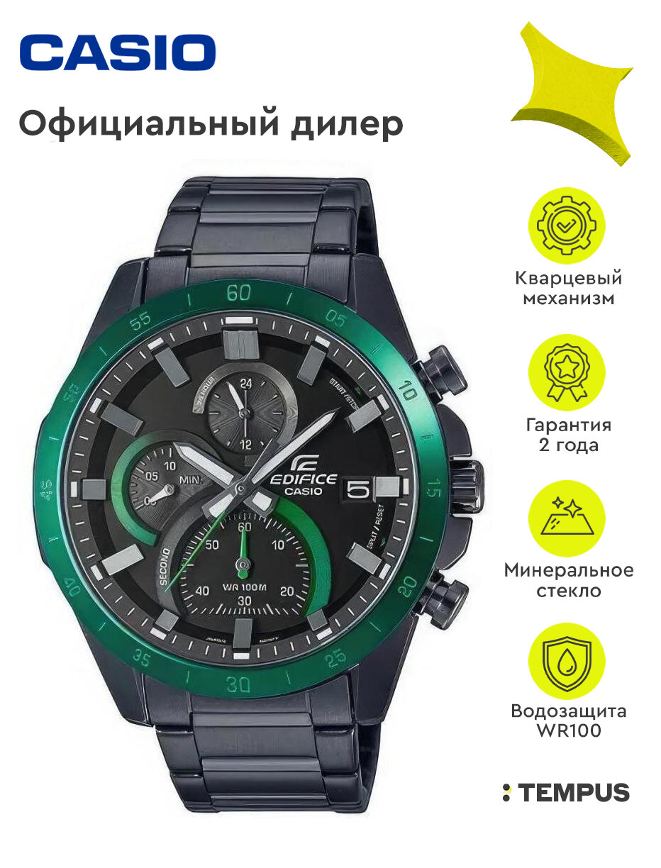 EFR-571DC-1A Casio наручные часы кварцевые WR100 (10 атм) мужские черный отображение числа подсветка стрелок минеральное стекло