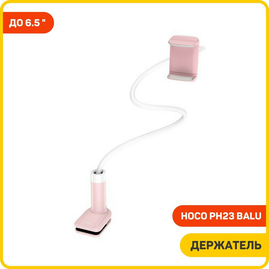 Держатель настольный HOCO, PH23, Balu, для смартфона 4,5"-6,5", силикон, металл, гибкая нога 70 см, цвет: розовый, белая вставка