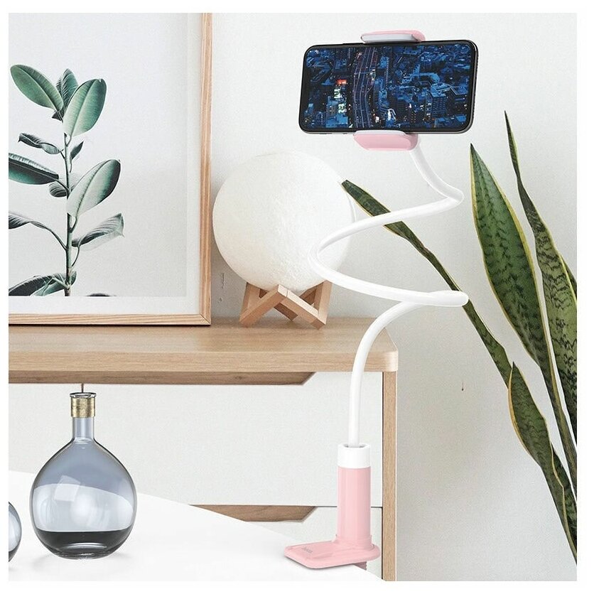 Держатель настольный Hoco PH23 Pink White для телефона 4,5д-6,5д, на струбцине, регулируемый, бело-розовый