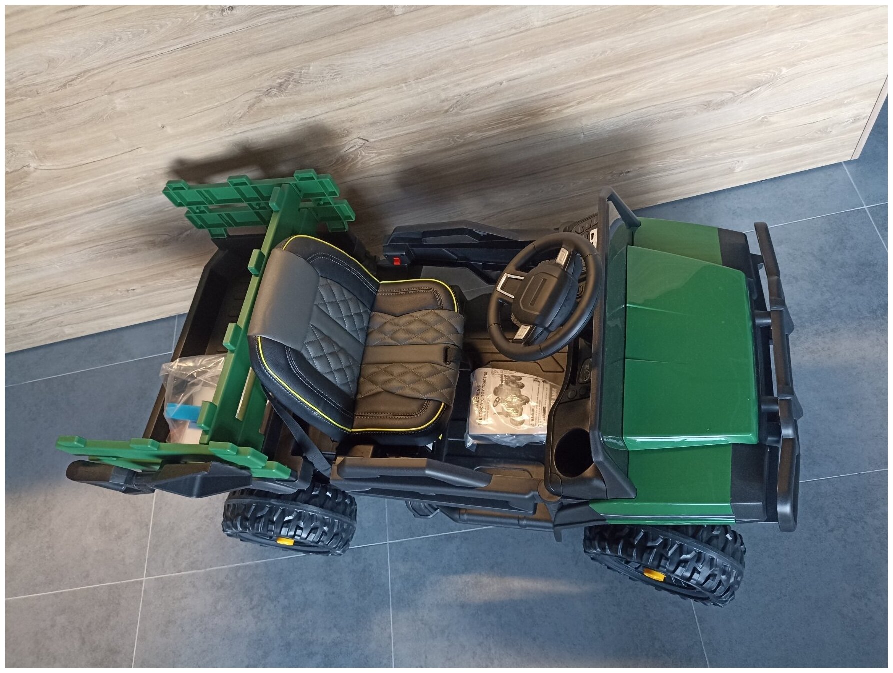 | Комплектация | зарядное устройство / пульт ДУ / ремни безопасности / ручка/педаль газа / тормоз |