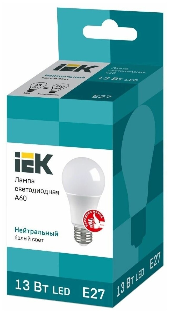 Лампа светодиодная A60 шар 13Вт 230В 4000К E27 IEK (6шт/уп) интересное: