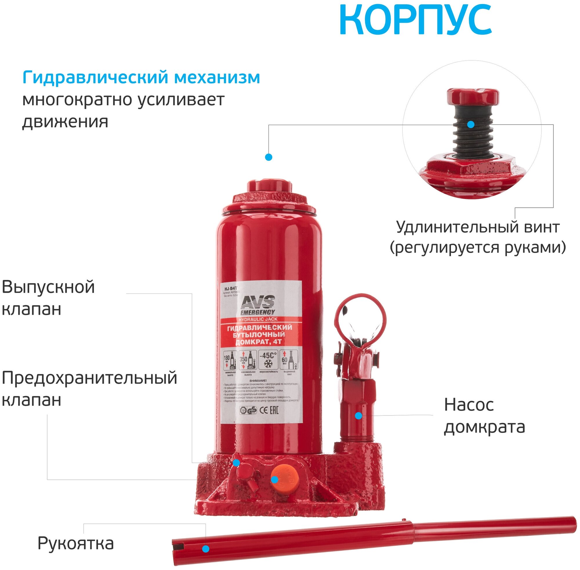 Домкрат гидравлический AVS HJ-B4T, 4т, 180-350мм. интересное: