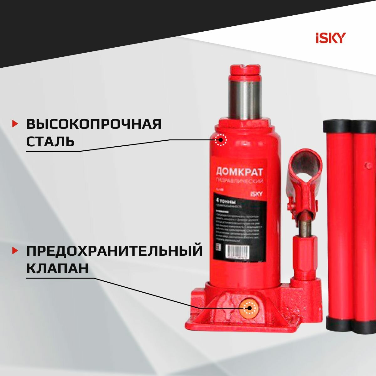 Домкрат бутылочный гидравлический iSky, 4 т, от 178 до 343 мм, в картонной коробке ISKY ILJ4B | цена за 1 шт