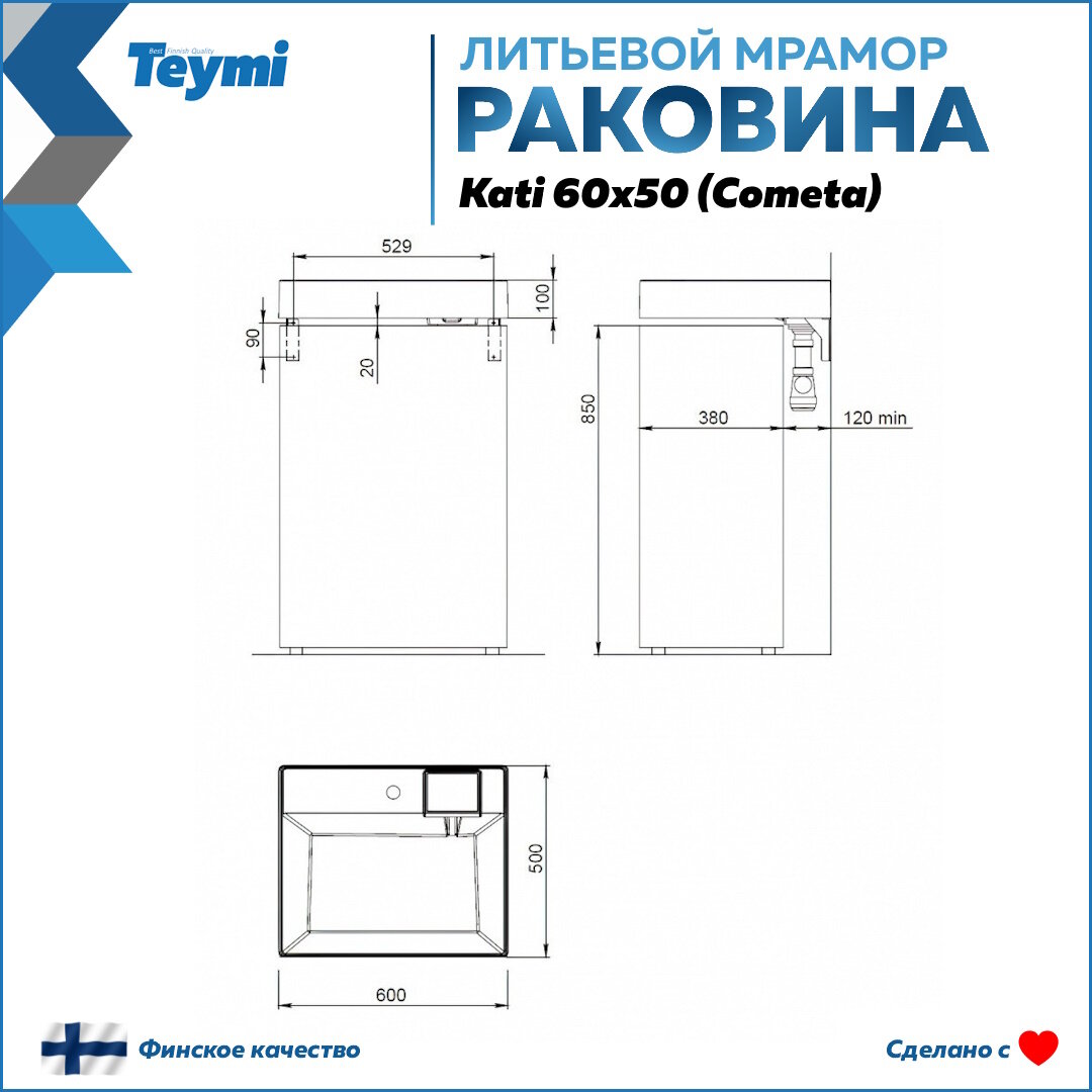 Раковина над стиральной машиной Teymi Kati 60х50 (Cometa), литьевой мрамор T50702 интересное: