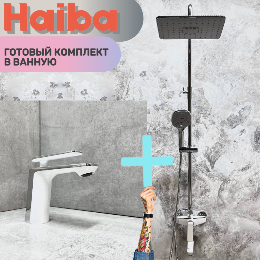 Душевая система и Смеситель для раковины HAIBA HB24548-8-HB10548-8, материал: латунь, цвет: белый/хром. интересное: