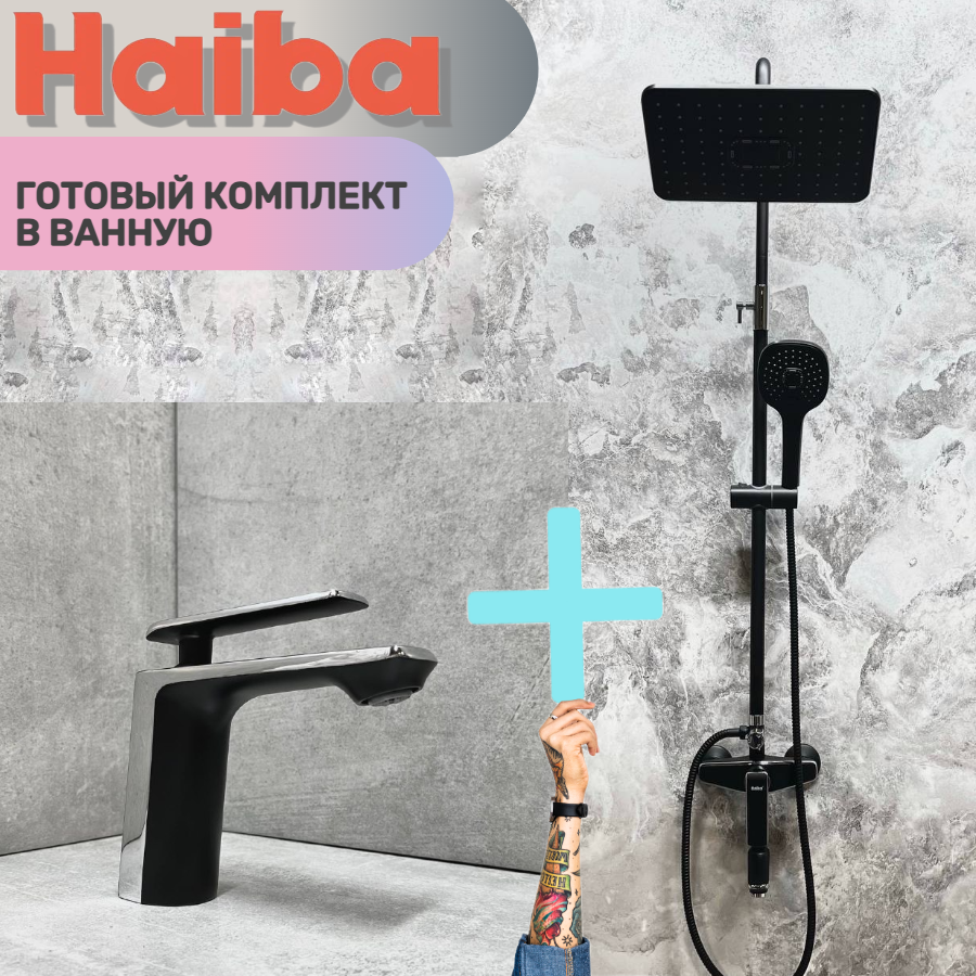 Душевая система и Смеситель для раковины HAIBA HB24548-7-HB10548-7, материал: латунь, цвет: черный/хром. интересное:
