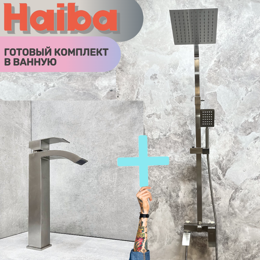 Душевая система и Смеситель для раковины HAIBA HB24815-HB11815, материал: нержавеющая сталь. интересное: