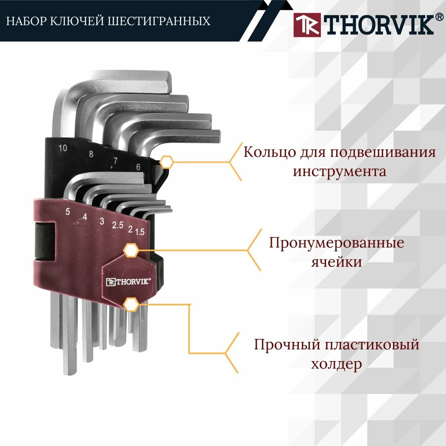 Набор торцевых шестигранных ключей H1.5-H10, 10 предметов Thorvik HKS10S