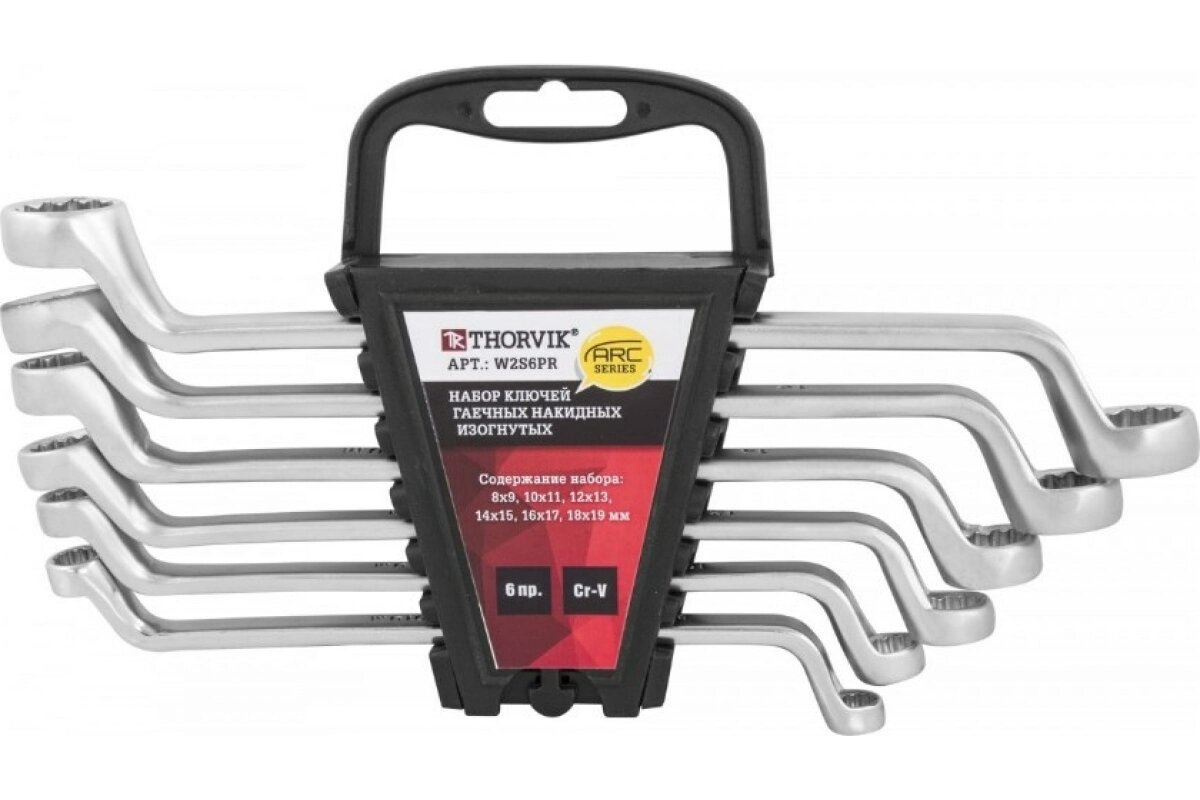 W2S6PR Набор ключей гаечных накидных изогнутых серии ARC на держателе, 8-19 мм, 6 предметов.Thorvik интересное: