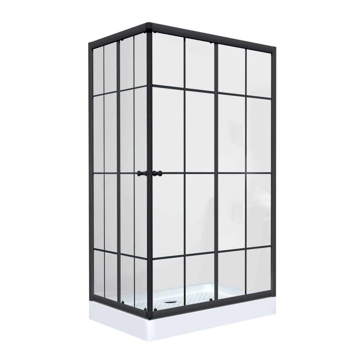 Niagara Душевой уголок Nova 120 x 80 см прямоугольный, дверь раздвижная, стекло прозрачное, профиль черный, NG-0120-14