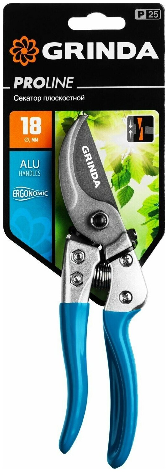 GRINDA P-25 200 мм, с эргономичными алюминиевыми рукоятками, Плоскостной секатор, PROLine (423425)