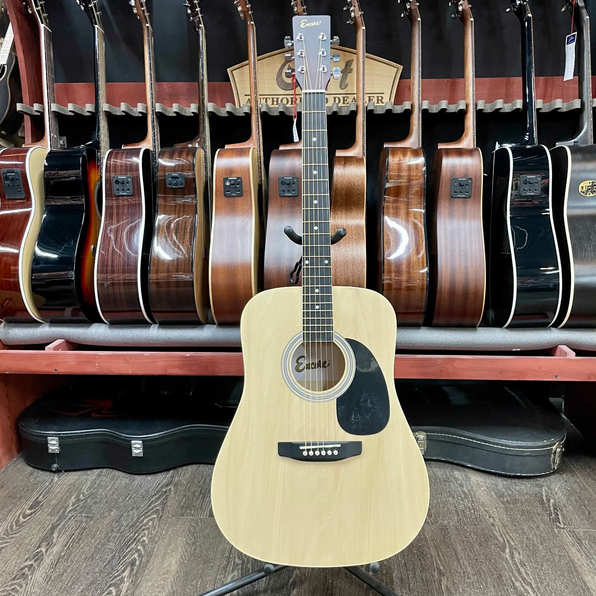 Encore EWP-100N акустическая гитара Dreadnought, с чехлом и аксессуарами, цвет натуральный