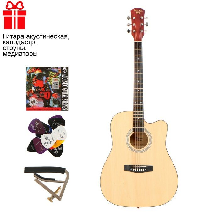 Купить Music Life Набор гитариста премиум, бежевый: Гитара акустическая, Каподастр, Струны