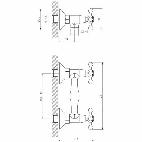 Смеситель DECOROOM DR54055 для душа, двуручный