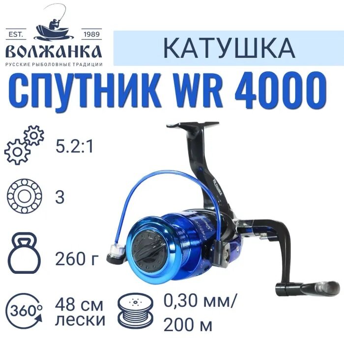 Катушка рыболовная безынерционная "Волжанка Спутник WR 4000" (3 подш);(0.30мм/200м)/Катушка для рыбалки