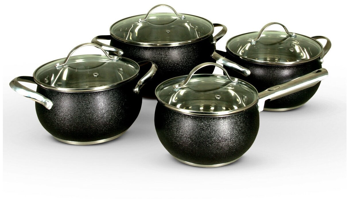 | Дополнительная информация | материал крышек: стекло; материал ручек: сталь; мерная шкала: есть; диаметр кастрюль: 18 см, 20 см, 24 см; диаметр ковша: 16 см |