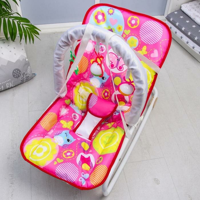 Шезлонг-качалка для новорождённых «Цветы», игровая дуга, съёмные игрушки микс интересное: