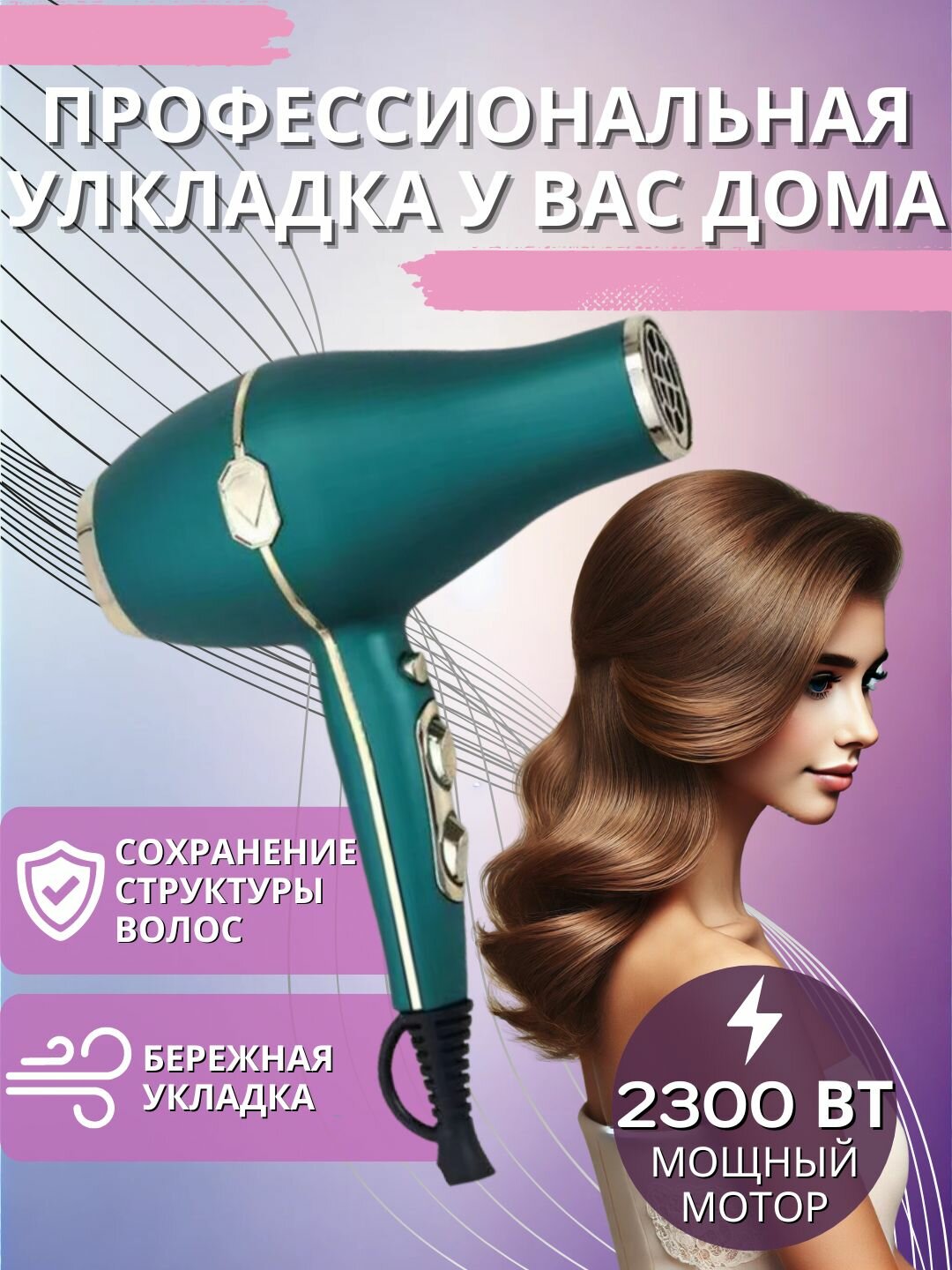 Купить Профессиональный фен для волос с системой ионизации Cronier CR-7722, Зеленый