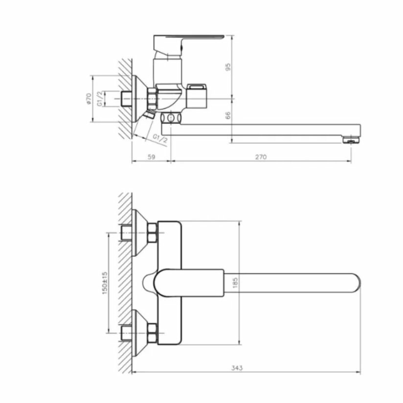 Смеситель для ванны Haiba HB22505, хром (хром / глянцевая)