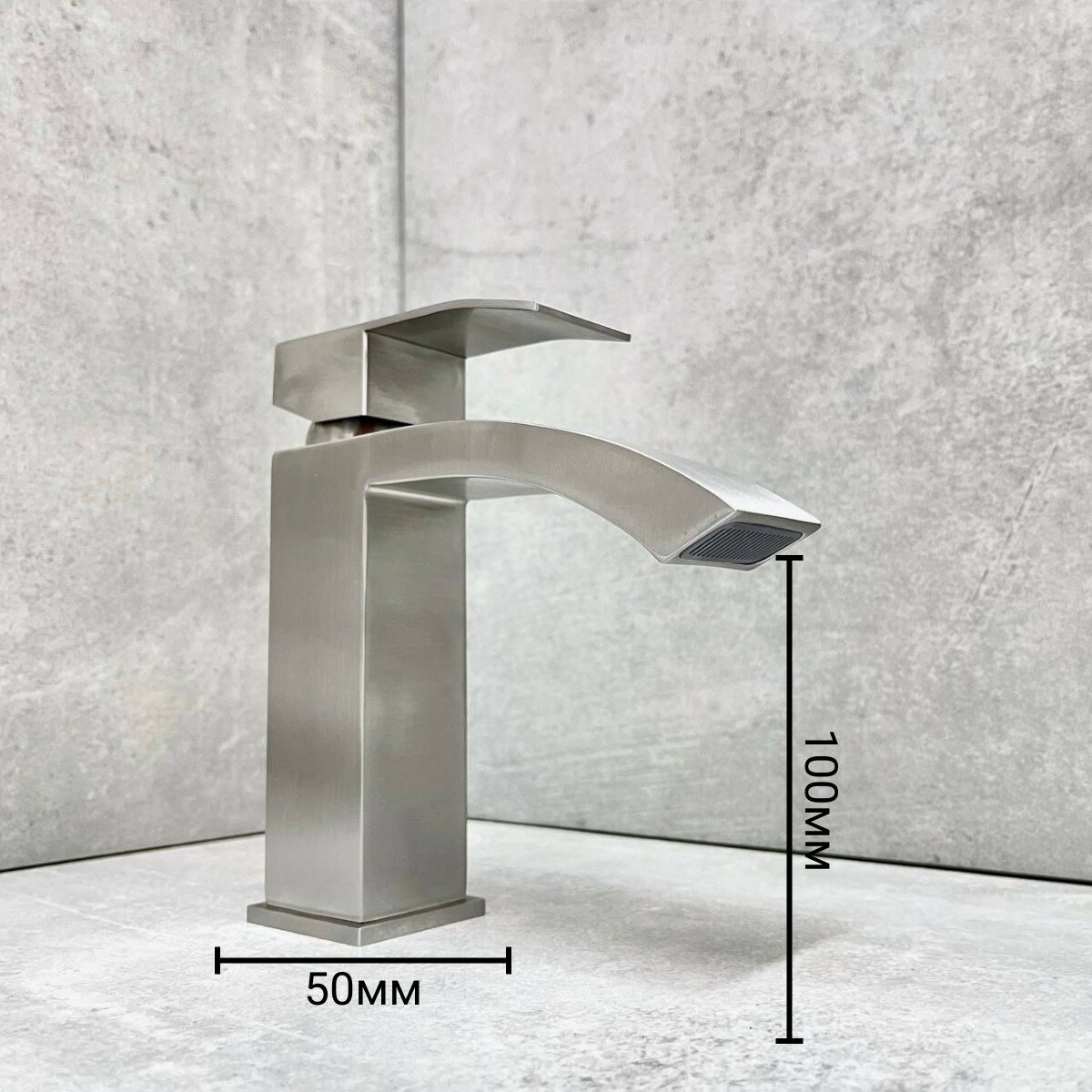 Смеситель для раковины и умывальника HAIBA HB10801 из пищевой нержавеющей стали, литой излив, цвет серебристый, монокомандный, аэратор, универсальный.