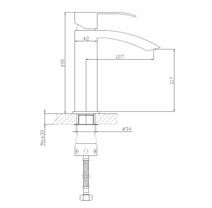| Комплектация | смеситель, аэратор, керамический картридж, гибкая подводка 1/2" 40 см |