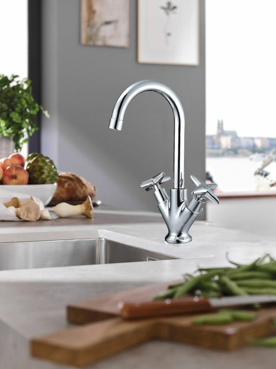 Смеситель для кухни Haiba HB4099 с гайкой, хром интересное: