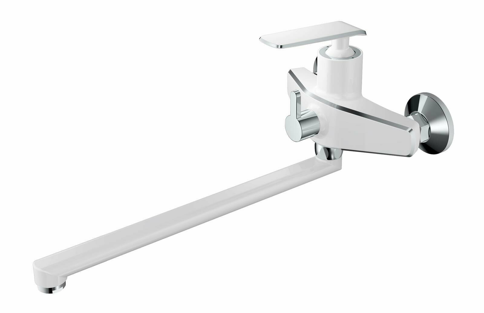 Купить Смеситель для ванны с душем Haiba HB22548-8 с длинным изливом, лейкой и шлангом и переключателем в корпусе белый