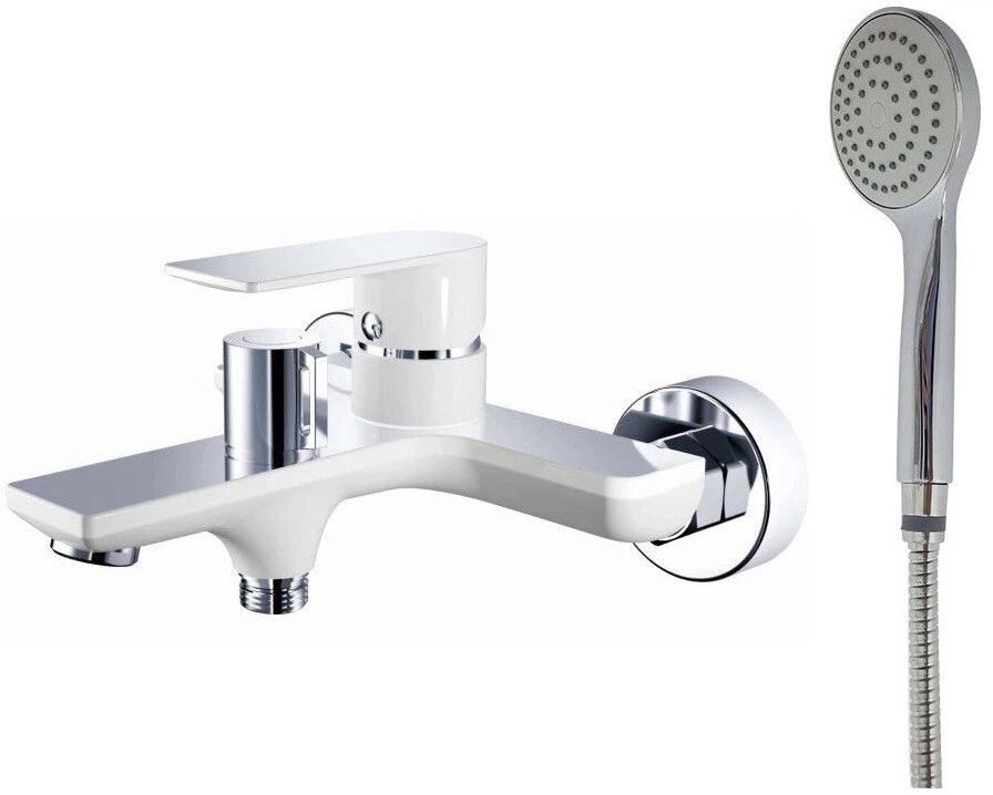 Смеситель для ванны Haiba с коротким изливом, с душевым шлангом и лейкой, белый/хром