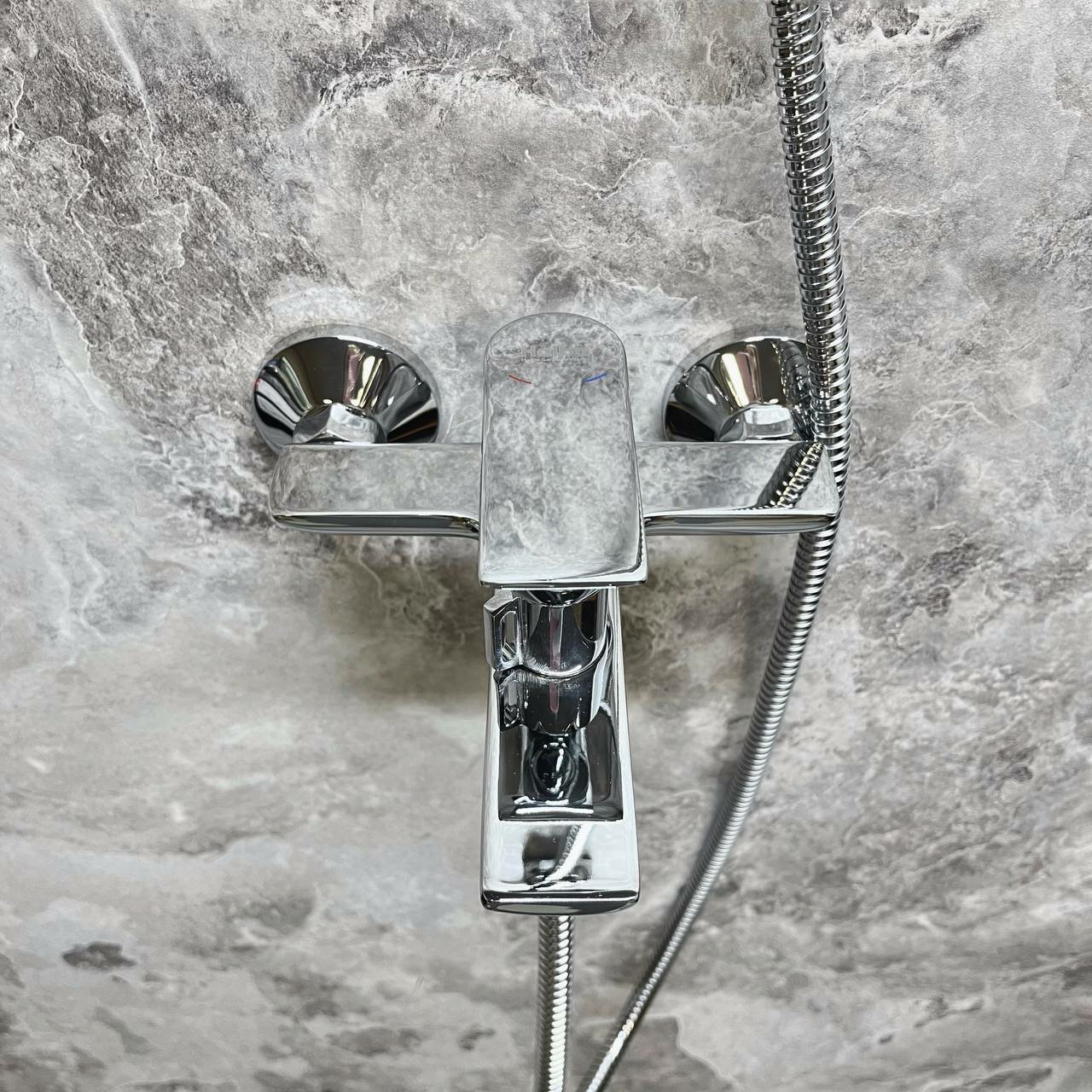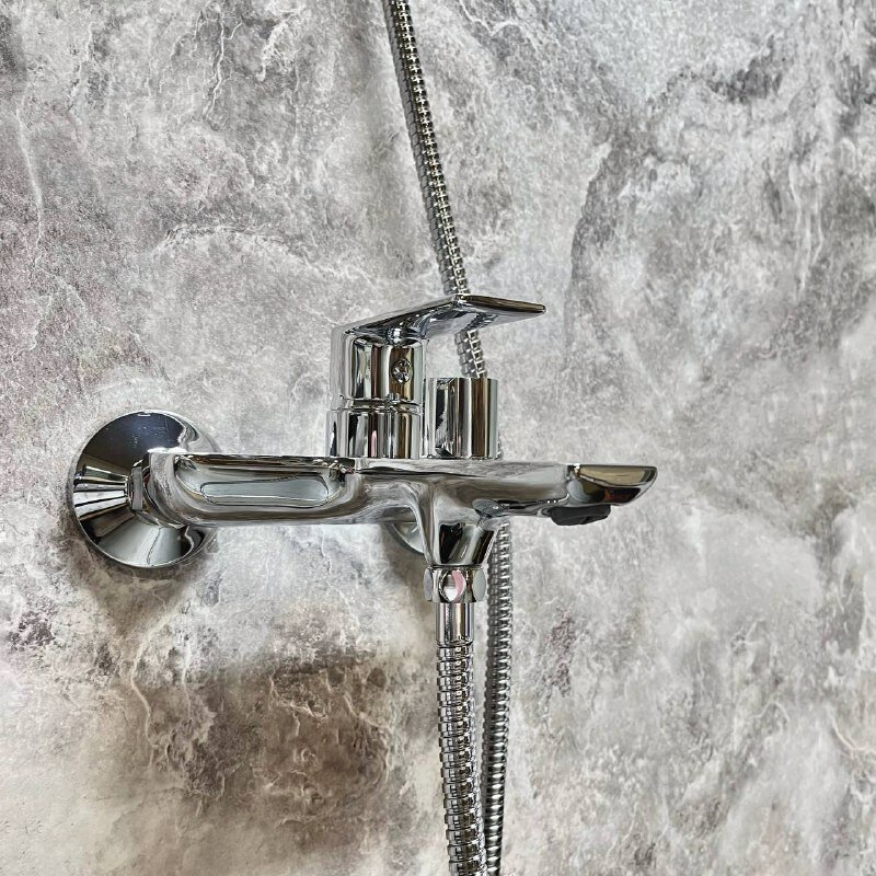 Смеситель для ванны с душем Haiba HB60505 с коротким изливом лейкой и шлангом хром