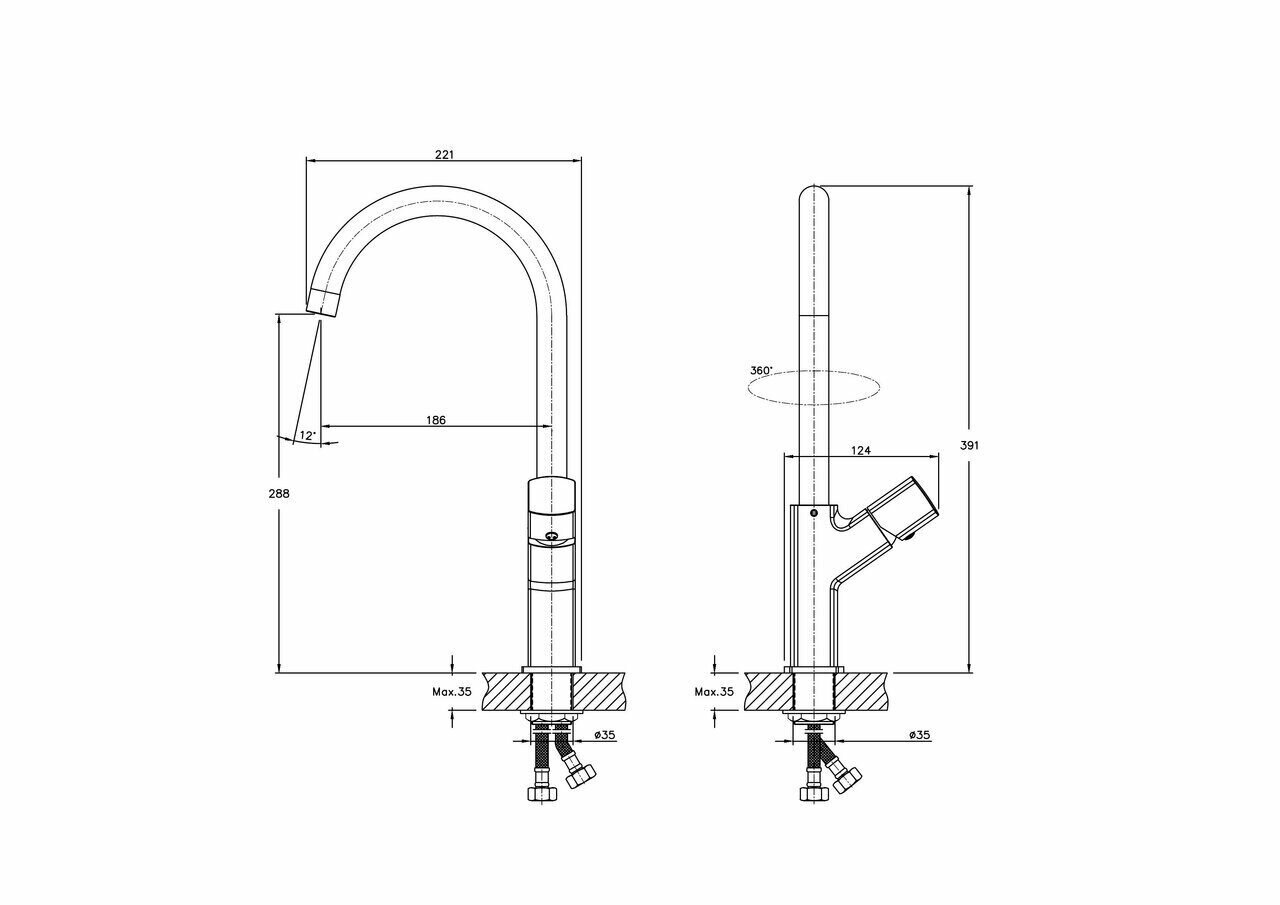 | Комплектация | Гибкая подводка 1/2"- 2 шт. |