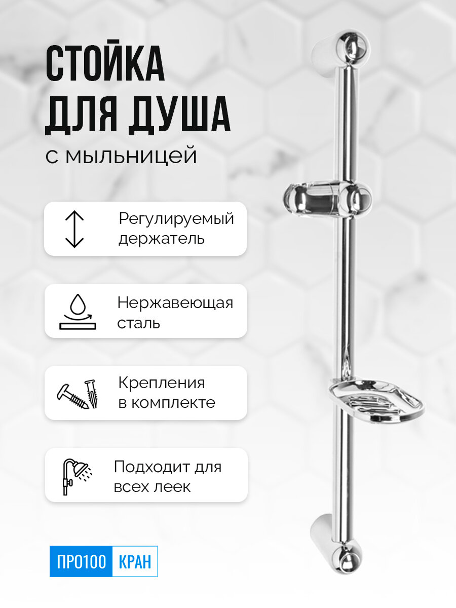 Душевая стойка без лейки и шланга для ванны и душа,штанга с регулирующейся мыльницей из нержавеющей стали и пластика