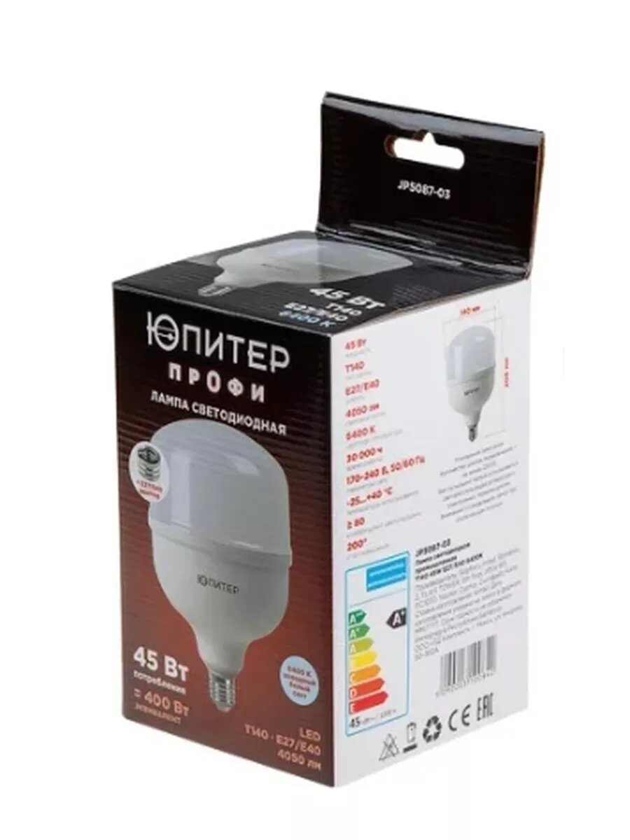 Лампа светодиодная промышл. T140 45 Вт 170-240В E27/E40 6400К юпитер (400 Вт аналог лампы накал., 4050Лм, холодный белый свет) (JP5087-03) интересное: