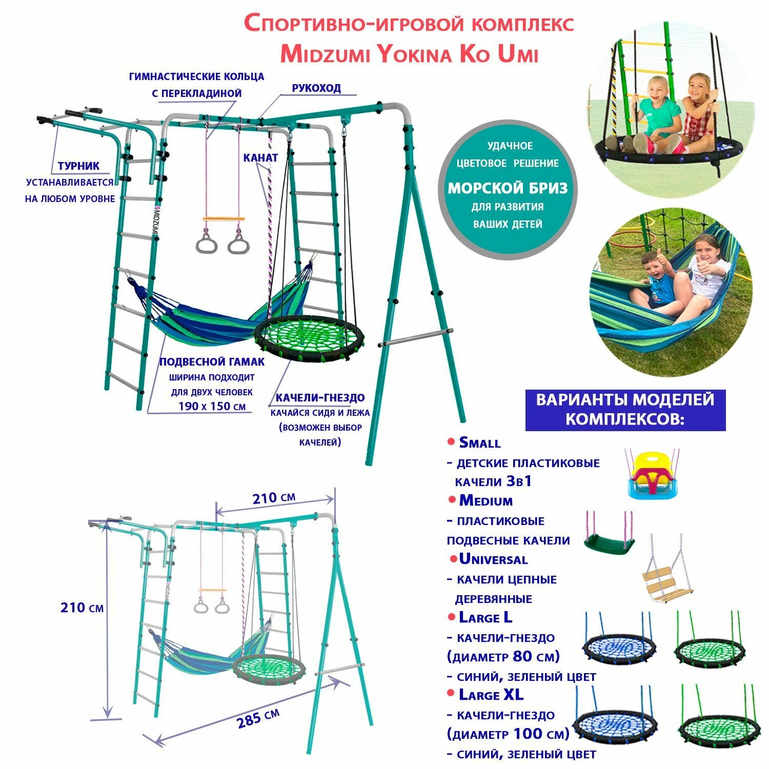 Спортивно-игровой комплекс Midzumi Yokina Ko Umi Small Детские пластиковые качели 3в1 (синий гамак) интересное: