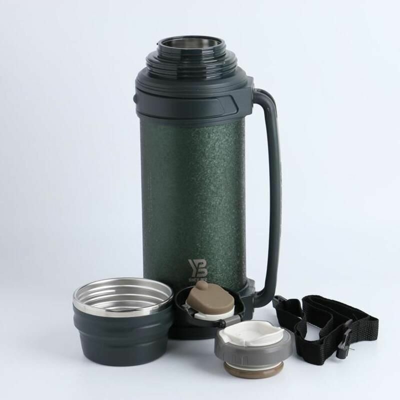 Термос, 2 л, Тропа "Девис", с кружкой, с ремешком, сохраняет тепло 20 ч, 13.5 х 34 см, зелёный 71092