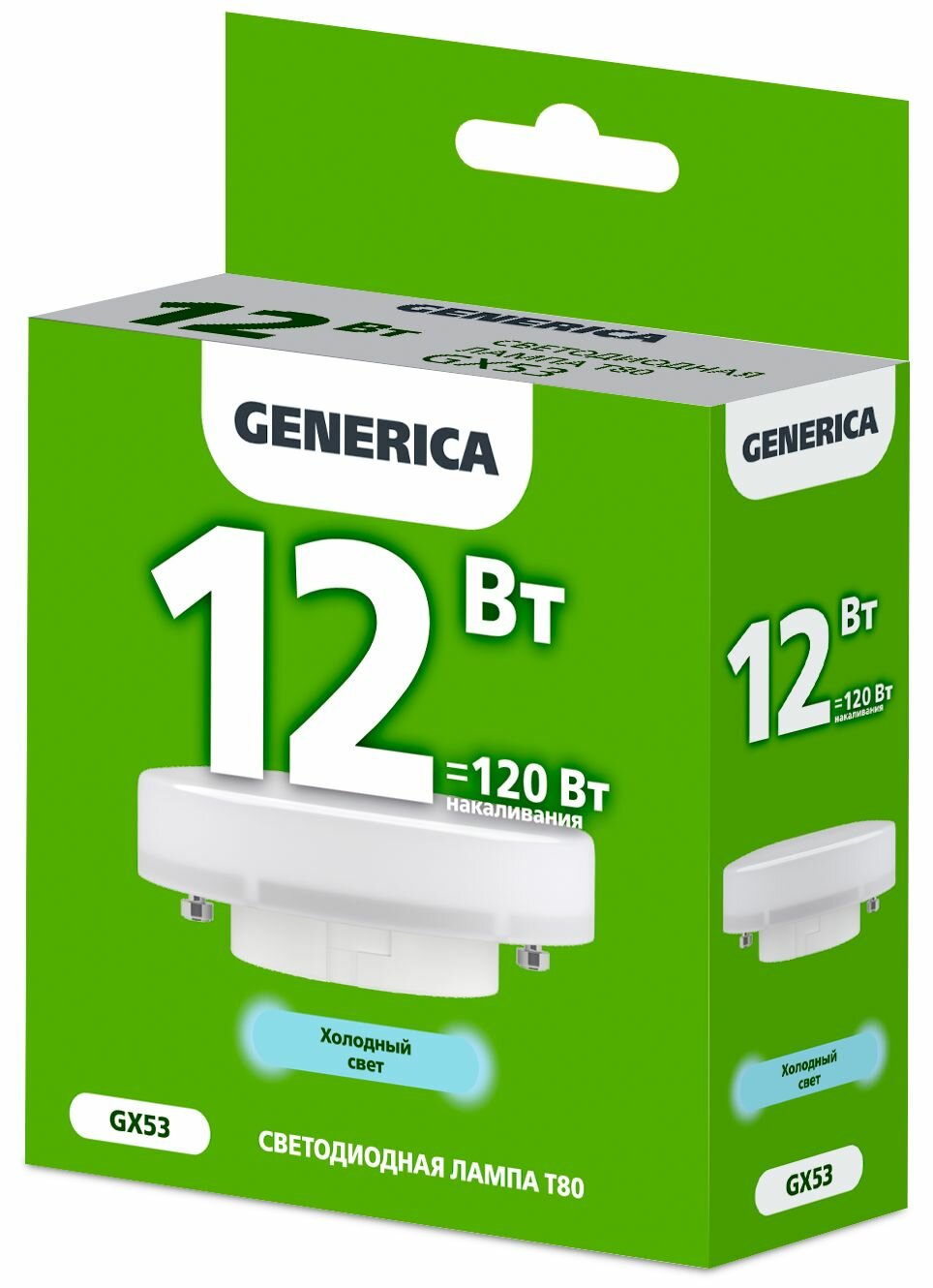 Лампочка светодиодная GENERICA 12Вт=120Вт 6500К холодный свет GX53 T80 таблетка (комплект из 5 шт.)