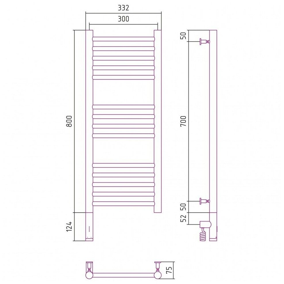 Электрический полотенцесушитель Сунержа Богема 3.0 прямая 800х300 лтэн без покрытия