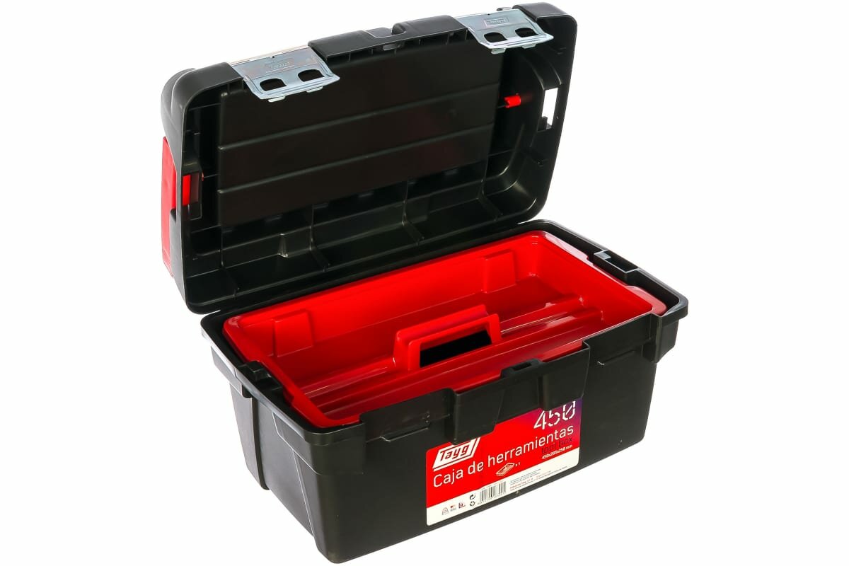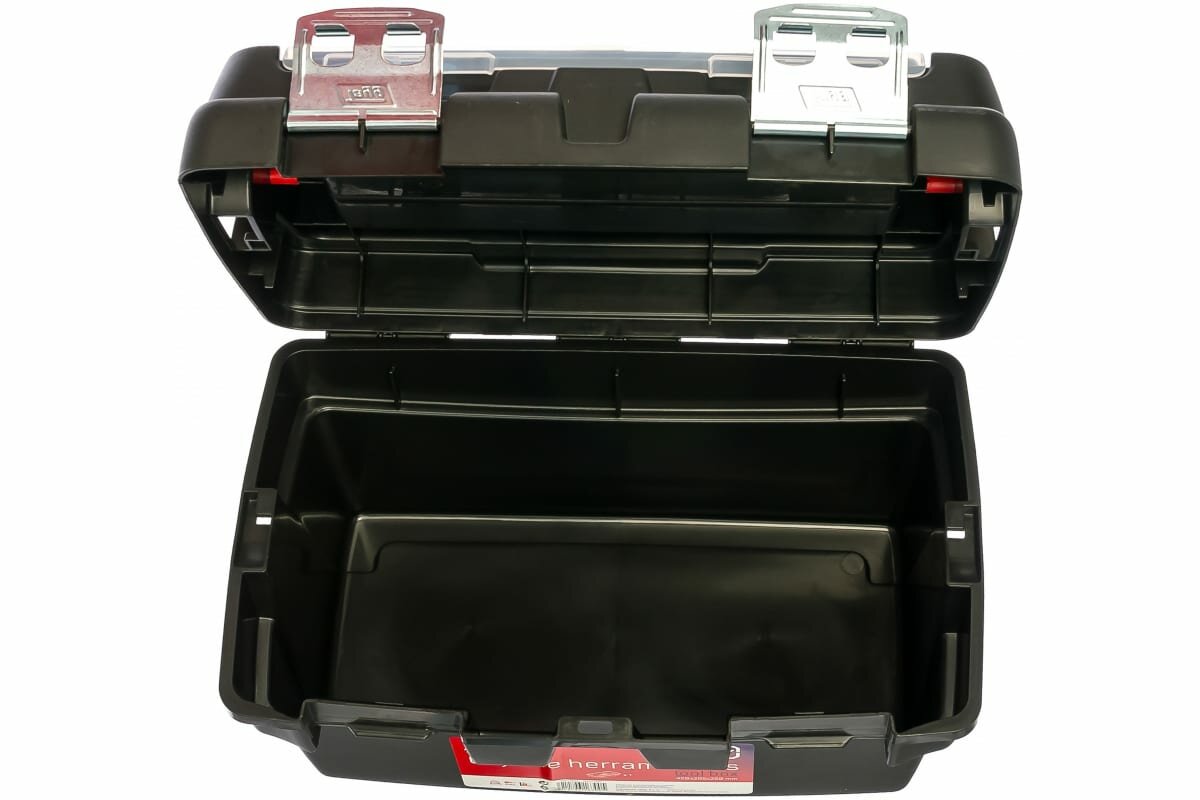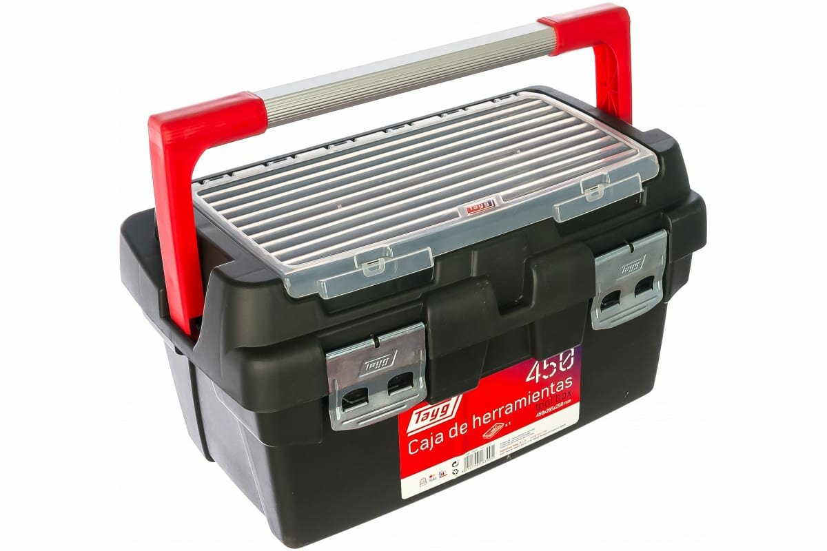Ящик для инструмента TAYG №450 с лотком, органайзером и ручкой-фиксатором, черный, 450х285х250 мм