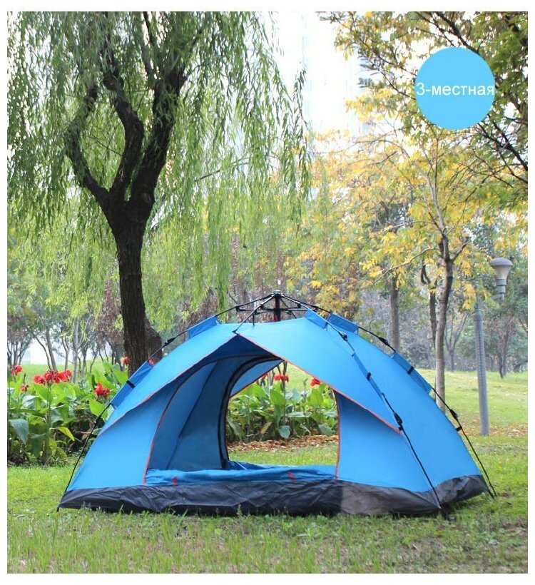 Палатка трехместная с тентом 6004, размер Д210*Ш210*В140, палатка для туризма голубая интересное: