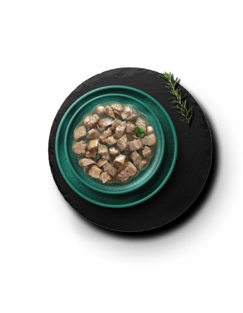 | Состав | мясо и субпродукты (в том числе курица), продукты переработки злаков, загустители, минеральные вещества, аминокислоты (в том числе таурин), красители, витамины, сахара |