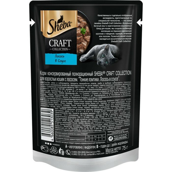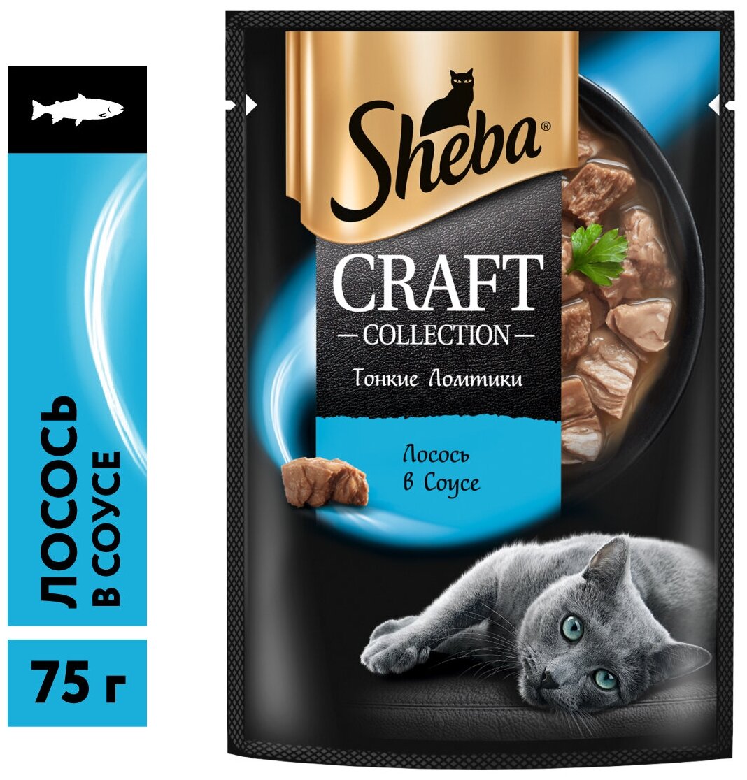 Sheba Влажный корм для кошек (паучи) CRAFT COLLECTION «Тонкие ломтики. Лосось в соусе» 1023149110244556 0,075 кг 51111 (34 шт)