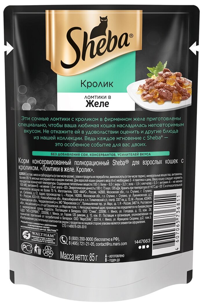 SHEBA 75гр Корм для кошек ломтики в желе Кролик (пауч) интересное: