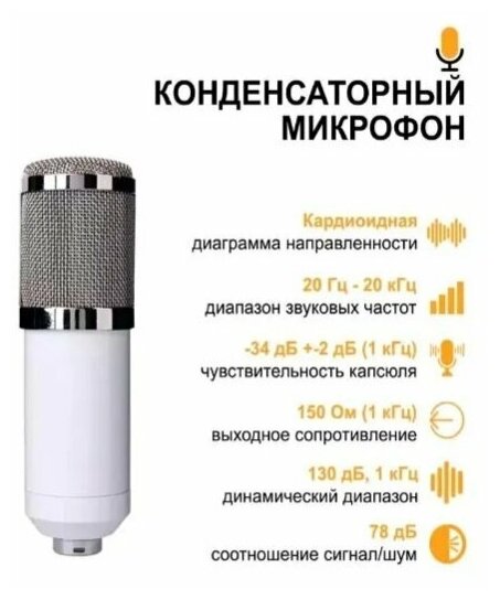 Конденсаторный студийный микрофон премиум Набор studio BM800 серебро с белым. Для стриминга интересное: