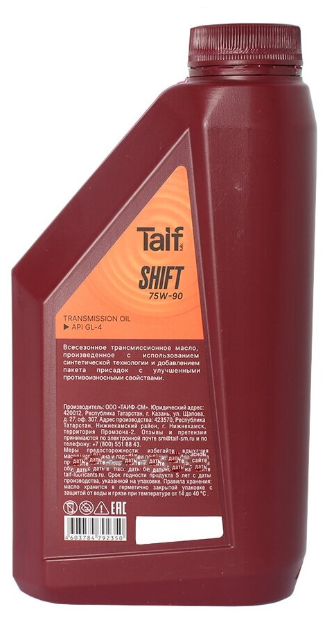 Трансмиссионное масло TAIF SHIFT GL-4 75W90 1л интересное:
