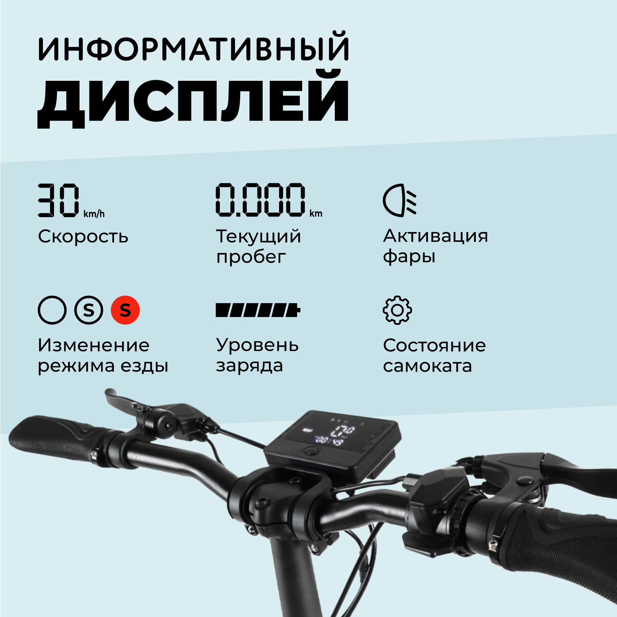 | Особенности электросамоката | дисплей / задний габарит/стоп-сигнал / индикатор скорости / круиз-контроль / поддержка Bluetooth / передняя фара (фонарь) / привод задний / привод передний / привод полный / приложение на смартфон / ограничитель скорости |
