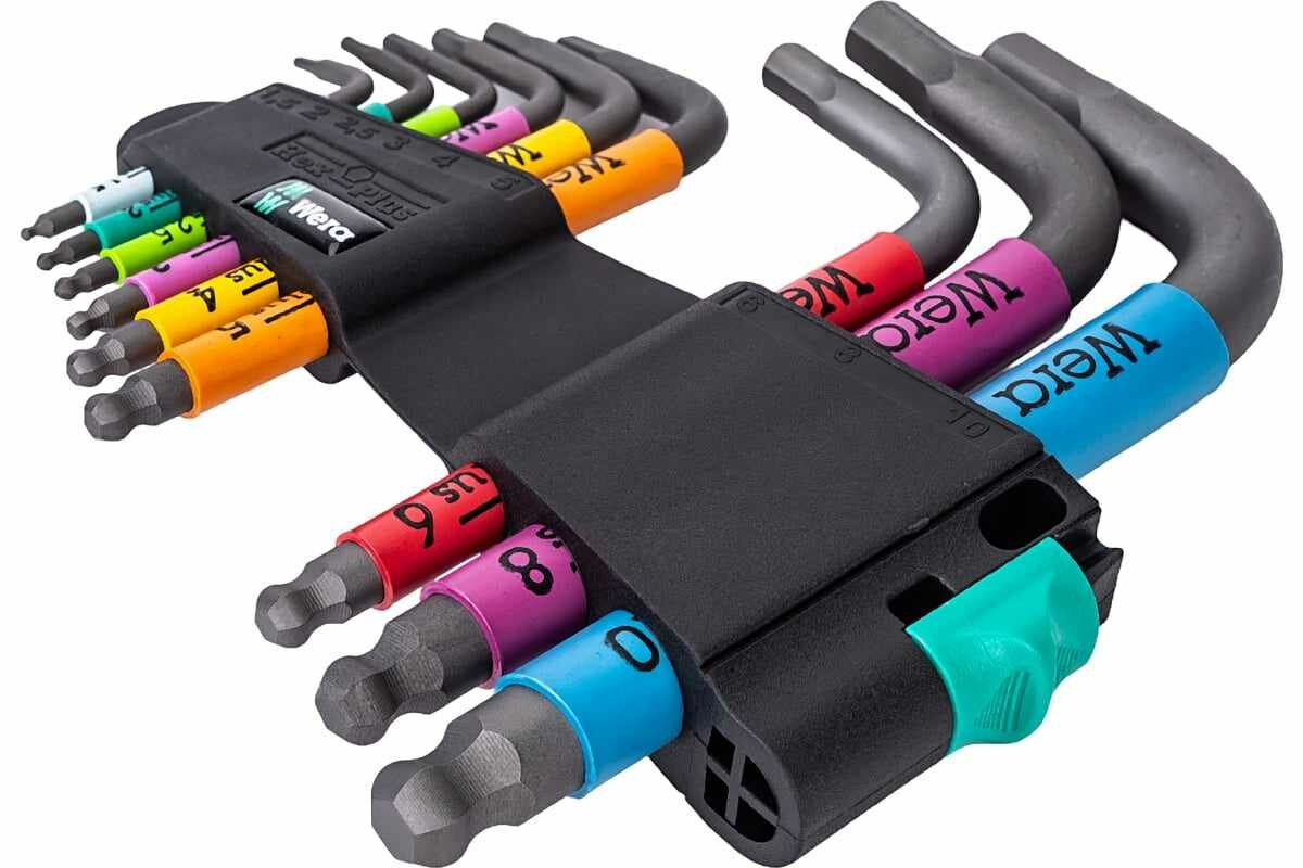 Набор ключей WERA WE-133164 950/9 SPKS Hex-Plus Multicolour BlackLaser 2 Г-образные, с шаром, 9 пр.