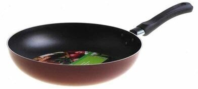 | Минусы: | Сковорода кривая. Тонкий металл, при нагревании деформируется, дно выгибается. |